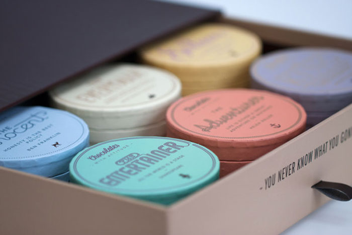 “個(gè)性是通過(guò)一個(gè)獨(dú)特的報(bào)價(jià),一個(gè)獨(dú)特的設(shè)計(jì)和獨(dú)特的類型的巧克力表達(dá)。設(shè)計(jì)區(qū)分了12種不同的字體,字體的使用,這些小字體是圓形的,像是小帽子。巧克力是可口精品巧克力獨(dú)特的配方了。一切都是從地上發(fā)展的。”