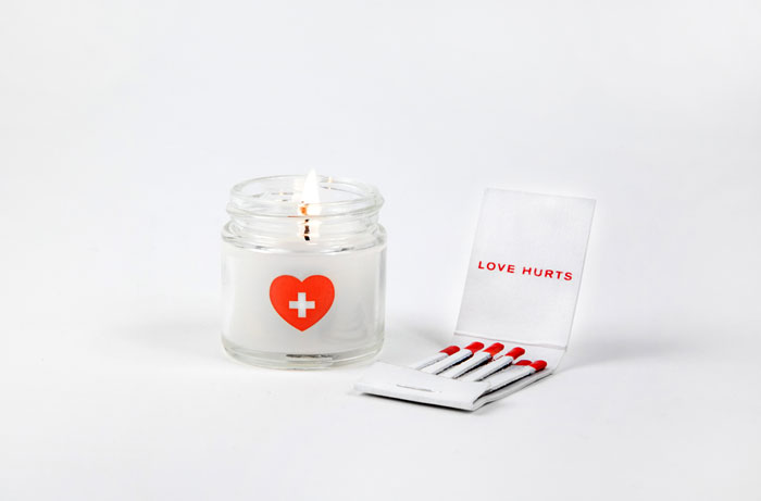 一個破碎的心的急救包。最初,我知道我不想做一個悲傷的工具,想用幽默感來接近這個產(chǎn)品。受傷的愛包含了所有的必需品,
