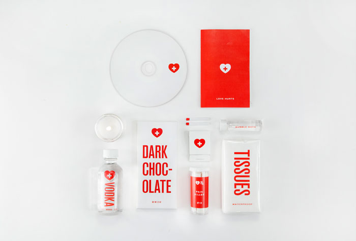 通過一個粗略的分手,如黑巧克力,伏特加,一個優(yōu)秀的混合光盤,如果一切都失敗,組織。所有的產(chǎn)品整齊地包裝在一個緊湊的套件。