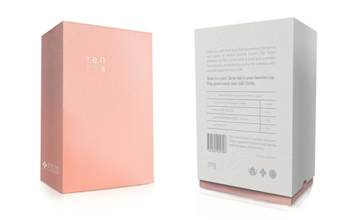 看看這美麗的茶包裝。我們喜歡在外套筒上的一個(gè)禪宗花園的微妙質(zhì)地。一旦撕開它,你看到一個(gè)散熱墊模式從標(biāo)志類型。色彩柔和的調(diào)色板反映了設(shè)計(jì)師想要傳達(dá)的寧靜。